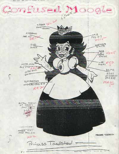 Princess Toadstool. This is most likely a test cel for a commerical or for the Mario Brothers cartoon series that was briefly aired.